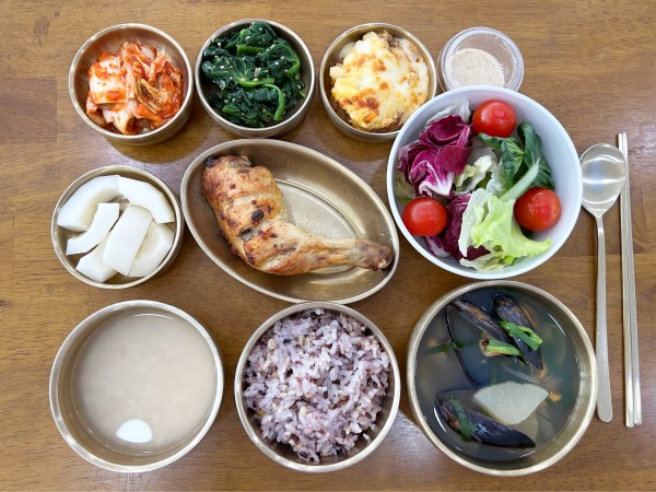 잡곡밥/ 누룽지/ 홍합탕/ 장각구이/