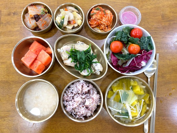 잡곡밥/누룽지/애호박찌개/닭수육&연겨자초장/