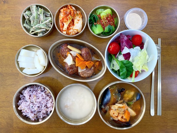 청경채찜/ 궁채무침/ 김치/