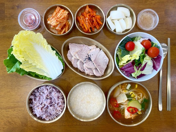 수육/ 모둠쌈채&쌈장/ 무말랭이/