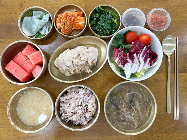 수육&쌈장/ 깻잎쌈무/ 아욱나물/