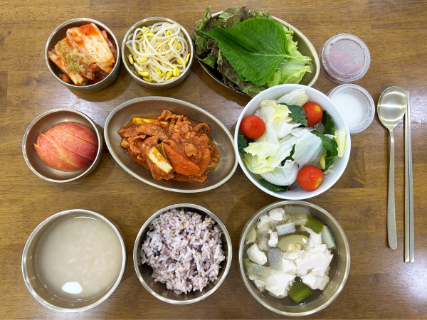 잡곡밥/ 누룽지/ 맑은순두부국/ 주꾸미불고기/