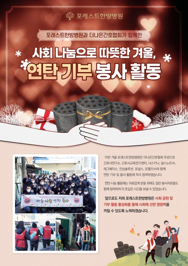 “포레스트한방병원과 더나은간호협회가 함께한, 사회 나눔으로 따뜻한 겨울, 연탄 기부 봉사 활동”