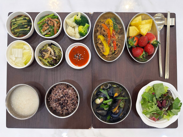 잡곡밥/누룽지/얼큰홍합탕/소고기새송이볶음/