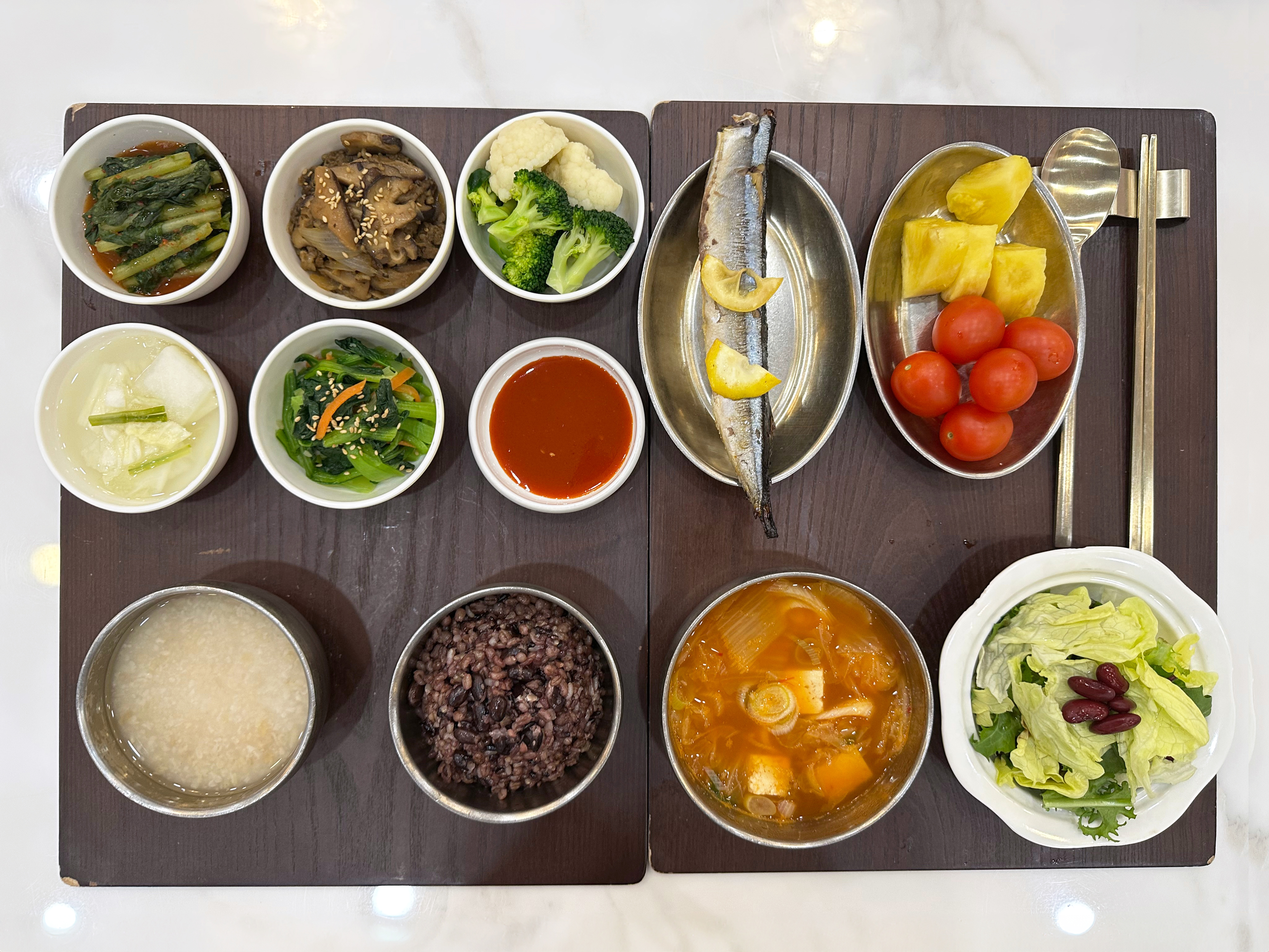 잡곡밥/누룽지/김칫국/레몬꽁치구이/우채표고볶음/