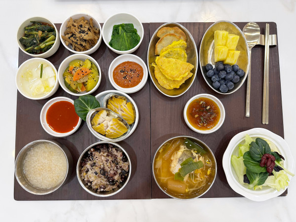 2월 17일 항암식단 [2/17 화요일 중식] 오곡찰밥/누룽지/대구탕/깻잎전&동태전&녹두전/ 닭안심우엉조림/애호박볶음/전복찜(라이브)/ 케일숙쌈/김치&물김치/계절샐러드/ 파인애플&블루베리 목록