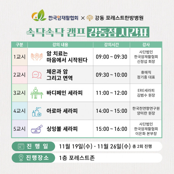 암환우 힐링 프로그램 ‘속닥속닥 캠프’ OPEN!