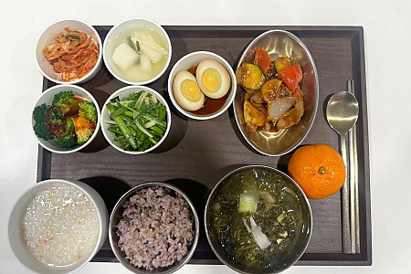 Hot 1월 13일 항암식단 [1/13 월요일 중식] 잡곡밥/새우야채죽/콩나물국/중화덮밥/ 우채그린빈볶음/데친두부*양념장/ 열무나물/김치&물김치/오렌… 2025.01.20 Hot 1월 12일 항암식단 [1/12 일요일 중식] 잡곡밥/브로컬리죽/쫄쫄이미역국/ 짬뽕제육/한식잡채/콩나물무침/ 상추깻잎쌈/김치&물김치 2025.01.13 Hot 1월 10일 항암식단 [1/10 금요일 중식] 잡곡밥/계란죽/청국장찌개/동태전/ 메추리알곤약조림/오이양파무침/ 고구마순들깨볶음/김치&물김치/… 2025.01.13 Hot 1월 9일 항암식단 [1/9 목요일 중식] 잡곡밥/새우야채죽/황태해장국/ 시래기돈사태찜/궁중떡볶이/양파장아찌/ 취나물무침/김치&물김치/계절… 2025.01.13 Hot 1월 8일 항암식단 [1/8 수요일 중식] 잡곡밥/브로콜리죽/누룽지/비지찌개/ 고등어김치찜/총알새송이조림/ 세발나물/김치&물김치/귤 2025.01.13 Hot 1월 7일 항암식단 [1/7화요일 중식] 잡곡밥/계란죽/게살계란국/팔보채/ 두부구이*양념장/매콤가지볶음/ 김치&물김치/계절샐러드 2025.01.13 Hot 1월 6일 항암식단 [1/6 월요일 중식] 잡곡밥/닭죽/냉이된장국/돈육폭찹/ 브로컬리초회/아욱나물/부추겨자무침/ 김치&물김치/귤 2025.01.13 Hot 1월 5일 항암식단 [1/5 일요일 중식] 잡곡밥/연두부죽/감자탕/가자미유린기/ 우엉잡채/오이미역초무침/청포묵김가루무침/ 김치&물김치 2025.01.06 Hot 1월 4일 항암식단 [1/4 토요일 중식] 잡곡밥/소고기야채죽/김치콩나물국/ 고갈비/메추리알떡볶이/미나리나물/ 꼬시래기무침/김치&물김치/계… 2025.01.06 Hot 1월 2일 항암식단 [1/2 목요일 중식] 잡곡밥/들깨죽/잔치국수/오징어볶음/ 황태채무침/중화풍가지찜/콩나물무침/ 김치&물김치/계절샐러드 2025.01.06 Hot 1월 1일 항암식단 [1/1 수요일 중식] 잡곡밥/계란죽/소고기토란국/갈치구이/ 고구마떡강정/고사리나물/들기름막국수/ 김치&물김치/귤 2025.01.06 Hot 12월 30일 항암식단 [12/30 월요일 중식] 잡곡밥/새우야채죽/냉이된장국/ 동파육/마늘쫑문어조림/물파래무무침/ 오이지무침/김치&물김치/오… 2025.01.06 Hot 12월 28일 항암식단 [12/28 토요일 중식] 잡곡밥/얼큰수제비국/조기구이/ 메추리알조림/마파두부/토란대나물/ 김치&물김치/계절샐러드 2024.12.30 Hot 12월 26일 항암식단 [12/26 목요일 중식] 잡곡밥/소고기야채죽/바지락칼국수/ 보쌈/파전/미나리초무침/케일쌈/ 김치&물김치/계절샐러드 2024.12.30 Hot 12월 25일 항암식단 [12/25 수요일 중식] 잡곡밥/계란죽/반계탕/오징어초무침/ 도토리묵*양념장/시금치나물/ 야채스틱&쌈장/김치&물김치/… 2024.12.30 1112131415 Search 검색대상 제목 내용 제목+내용 회원아이디 회원아이디(코) 글쓴이 글쓴이(코) 검색어 필수