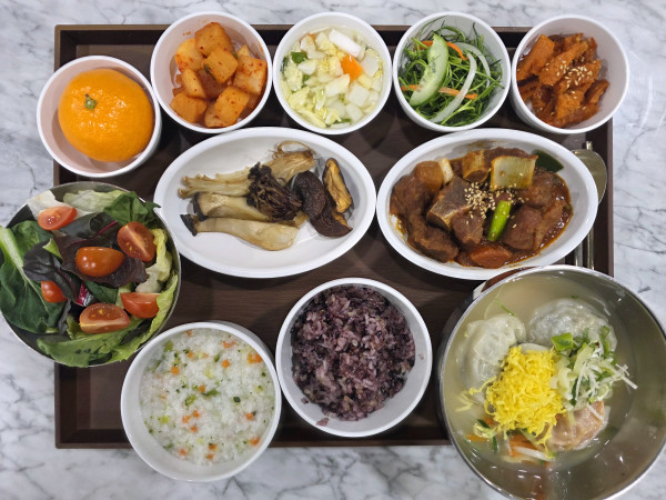 브로콜리죽 / 잡곡밥 / 떡만두국 / 돼지갈비찜 /
