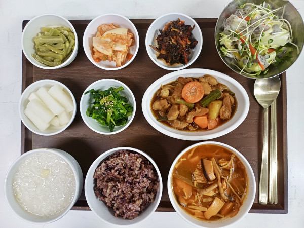잡곡밥/영양죽/버섯찌개/매콘간장찜닭/