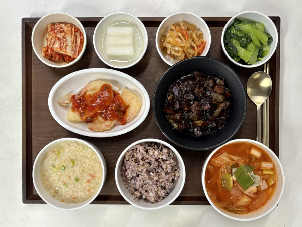 잡곡밥/브로콜리죽/김치국/야채짜장/