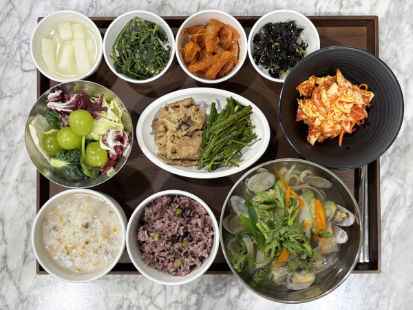 잡곡밥/ 영양죽/ 바지락칼국수/ 맥적구이*부추무침/