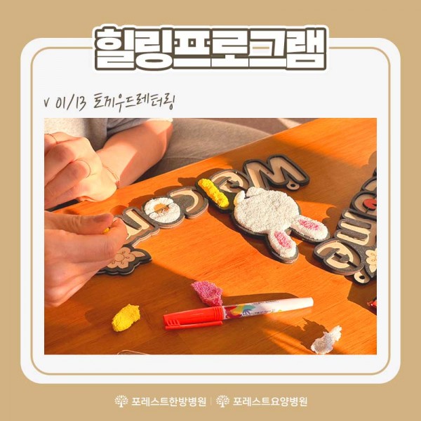 포레스트 요양병원에서는 힐링 프로그램을 통해 정서적 안정을 더할 수 있도록 최선을 다하겠습니다. :)