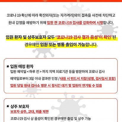 Hot 위클리피플 인터뷰 지난 18일! 위클리피플의 포레스트 한방병원 이대연 대표 병원장님 인터뷰가 있었습니다. :) 위클리피플은 사회 주요분야의… 2022.03.08 Hot PCR장비 신규 도입 포레스트한방병원원 PCR(유전자증폭검사) 장비 신규 도입으로 코로나 자체 검사를 진행합니다. 앞으로도 환자, 보호자, 임직원… 2022.03.08 Hot 포레스트한방병원 연탄기부 봉사활동 안내 “포레스트한방병원과 더나은간호협회가 함께한, 사회 나눔으로 따뜻한 겨울, 연탄 기부 봉사 활동” 이번 겨울 포레스트한방병… 2022.03.08 Hot 포레스트한방병원 설 명절 특식 안내 "설맞이 명절 음식은 포레스트한방병원과 함께 하세요." 포레스트한방병원 광화문본점, 잠실점에서 전문쉐프들이 환우분들을 … 2022.01.26 Hot 포레스트한방병원 잠실점 정민호 병원장 소개 " Patient First 병원은 환자가 우선입니다 " 어릴적 잔병치레가 많아 병원 출입이 잦았는데, 불친절하고 권위… 2022.01.26 Hot 잠실 포레스트한방병원 의료진과 특급쉐프진이 함께하는 금주의 약선요리 잠실 포레스트한방병원 의료진과 특급쉐프진이 함께하는 금주의 약선요리 안내: ) 9월 28일 약선더덕제육볶음 9월 3… 2021.09.28 Hot 잠실 포레스트한방병원 의료진과 특급쉐프진이 함께하는 금주의 약선요리 잠실 포레스트한방병원 의료진과 특급쉐프진이 함께하는 금주의 약선요리 안내: ) 9월 15일 한방 동파육 9월 17일… 2021.09.15 Hot KT가 자사 정보통신기술(ICT) 기술을 접목해 호텔급 서비스를 제공하는 스마트 한방병원을 조성했다 KT가 자사 정보통신기술(ICT) 기술을 접목해 호텔급 서비스를 제공하는 스마트 한방병원을 조성했다. KT는 포레스트한방… 2021.08.04 Hot 코로나19 확산에 따른 입원환자 및 상주 보호자 협조 안내 코로나19 확산에 따른 입원환자 및 상주 보호자 협조 안내 입니다. 2021.07.14 2122232425 Search 검색대상 제목 내용 제목+내용 회원아이디 회원아이디(코) 글쓴이 글쓴이(코) 검색어 필수