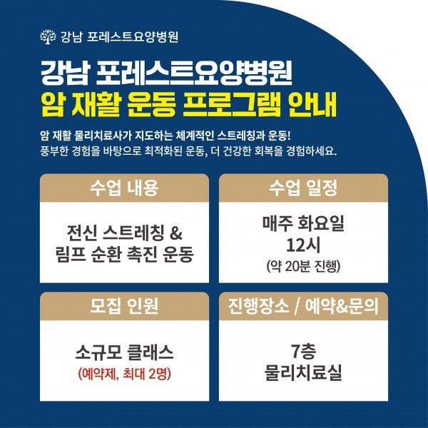 [강남 포레스트요양병원 암 재활 맞춤 운동 클래스 OPEN!]