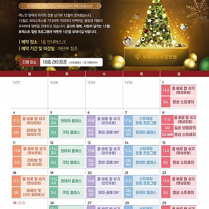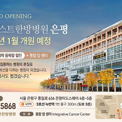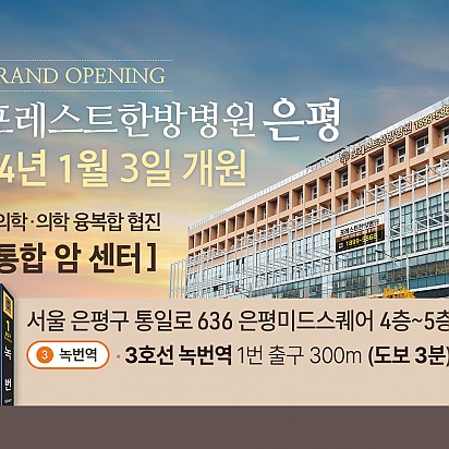 Hot 1월 힐링프로그램 포레스트의 1월 힐링프로그램을 소개합니다~! 새해를 맞이하여 더욱 재밌는 클래스들을 준비해보았습니다ㅎㅎ 포레스트의 … 2024.01.09 Hot "포레스트 암세포 자멸 유도 한약제제 한국한의약진흥원장상 수상" 지난 12월 16일, MBN "한의약 미래기술을 찾아라, K-메디슨" 방송편에서 포레스트 한의약기술이 소개되었습니다. 포… 2024.01.05 Hot 포레스트한방병원 은평점 개원 Grand opening 2024년 1월 3일, 포레스트한방병원 은평점이 성황리에 개원을 했습니다. 포레스트한방병원… 2024.01.04 Hot 크리스마스 이벤트 안녕하세요~! 모두들 즐거운 크리스마스를 보내셨는지요! 포레스트한방병원 강동과, 포레스트요양병원 강남에서는 크리스마스를 … 2023.12.26 Hot 루돌프 키링 만들기 포레스트요양병원 강남점에서 진행 된 루돌프 키링 만들기 힐링프로그램 수업입니다~! 포레스트에서는 다가오는 크리스마스를 … 2023.12.21 Hot 포레스트한방병원 은평점 개원예정 Grand opening 24년 1월, 포레스트한방병원 은평점 개원예정입니다! 차별화된 포레스트만의 진료, 서비스를… 2023.12.12 Hot 12월 힐링프로그램 어느덧 달력의 마지막 장을 넘기며 12월이 찾아왔습니다. 12월은 크리스마스를 기다리며 거리마다 반짝이는 불빛과 캐럴이 우리… 2023.12.05 Hot 라이브핏 클래스 몸도 마음도 건강해지는 라이브핏 클래스입니다! 1. 링테라피 2. 코어 필라테스 3. ABT 4. 힐링요가 를 배울수… 2023.11.23 Hot 고객의소리함 10월 마지막주 포레스트에 전달 된 고객의 소리함 내용입니다~! 포레스트에서 행복을 느끼시고 그 행복을 널리 공유해주… 2023.11.09 678910 Search 검색대상 제목 내용 제목+내용 회원아이디 회원아이디(코) 글쓴이 글쓴이(코) 검색어 필수