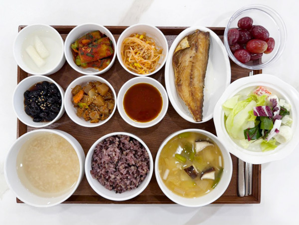 누룽지/ 잡곡밥/ 된장찌개/ 자반고등어*와사비장/