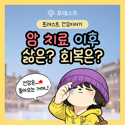 자궁내막암 3기, 박지혜 환우님의 희망일지 ep_1 | 포레스트 환우 이야기 2024.08.08 자궁내막암 3기, 박지혜 환우님의 희망일지 ep_2 | 포레스트 환우 이야기 2024.08.08 자궁내막암 3기, 박지혜 환우님의 희망일지 ep_3 | 포레스트 환우 이야기 2024.08.08 폐암 4기(비소세포암), 서중원 환우님의 희망일지 ep_1 | 포레스트 환우 이야기 2024.08.08 폐암 4기(비소세포암), 서중원 환우님의 희망일지 ep_2 | 포레스트 환우 이야기 2024.08.08 폐암 4기(비소세포암), 서중원 환우님의 희망일지 ep_3 | 포레스트 환우 이야기 2024.08.08 [건강정보] 봄이 오면, 식탁도 달라집니다 이 채소, 왜 요즘 자꾸 보일까요? 겉은 아삭, 속은 부드러운 지금 딱 먹어야 하는 제철 채소 부담 없이 먹기 좋… 2026.03.24 [건강정보] 암환자도… 뛰어도 될까요? 암환자도… 뛰어도 될까요? 진단 후 많은 분들이 멈춥니다 하지만 어떤 환우들은 천천히 움직이기 … 2026.03.18 힐링미 앱에서 인정받은 포레스트 환우분들의 진짜 후기 힐링미 앱에서 인정받은 포레스트 환우분들의 진짜 후기 “좋은 기운이 가득한 병원” “간호사 선생님 덕분에 … 2026.03.05 포레스트 3월 힐링프로그램 대한독립만세의 함성을 기억하는 3월, 포레스트와 함께 몸도 마음도 새롭게 피어나는 시간 3월 힐링 프로그램을 소개… 2026.03.03 포레스트 삼일절 대체공휴일 진료 안내 포레스트 삼일절 대체공휴일 진료 안내 안녕하세요, 포레스트입니다 삼일절 대체공휴일 진료(휴진) 일… 2026.02.24 Hot [건강정보]요즘 핫한 두쫀쿠, 암 치료 중에 먹어도 될까요? 요즘 핫한 두쫀쿠, 암 치료 중에 먹어도 될까요? 포인트는 ‘빈도와 양’. 두쫀쿠, 먹어도 되는 방법이 있습니다. 포… 2026.02.11 Hot [종로]2월 힐링프로그램 설날의 온기, 2월의 회복이 됩니다 포레스트 2월 힐링프로그램, 어떤 하루가 기다릴까요? 많은 관… 2026.02.02 Hot [포레스트 건강정보]암 치료 이후 삶은? 회복은? “치료는 끝났는데… 왜 이렇게 힘들죠?” 항암과 수술을 끝낸 포레양의 고민, 회복을 향한 숨은 이야기 속으로 들어가 봐요.… 2026.01.29 Hot 새해의 건강계획 세우셨나요? 치료의 연속 속에서 잠깐 멈춤 새해를 맞아 지금의 나, 지금의 몸을 살짝 체크해볼 시간이에요 포레스트가 차근차근… 2026.01.22 12345 Search 검색대상 제목 내용 제목+내용 회원아이디 회원아이디(코) 글쓴이 글쓴이(코) 검색어 필수