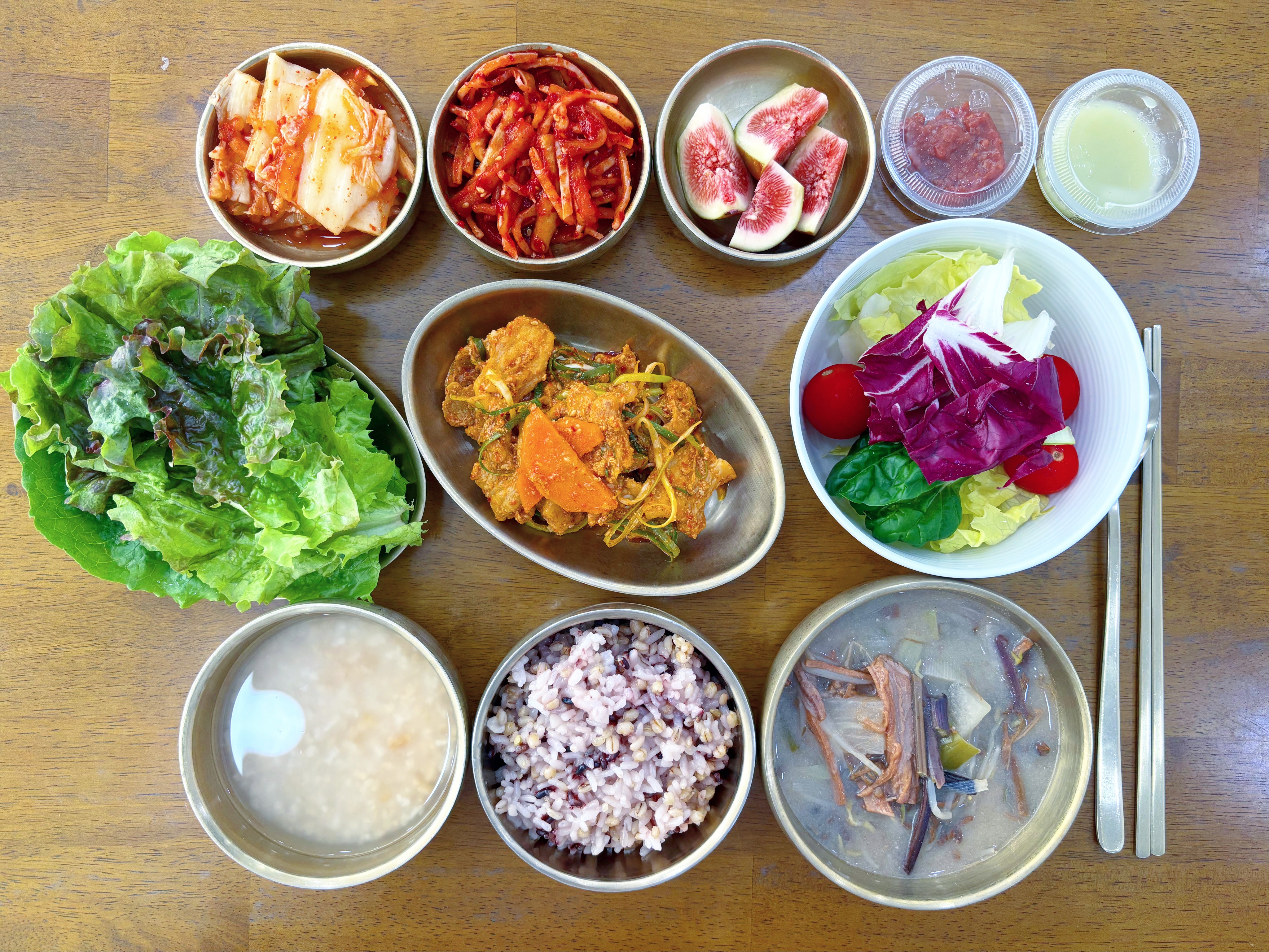 모둠쌈채&쌈장/ 진미채무말랭이무침/ 김치/