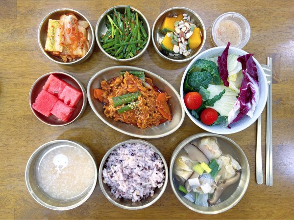 잡곡밥/ 누룽지/ 새우완탕/ 오리주물럭/