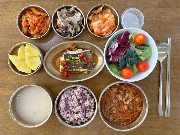 잡곡밥/ 누룽지/ 차돌짬뽕국/ 구운가자미유린기/