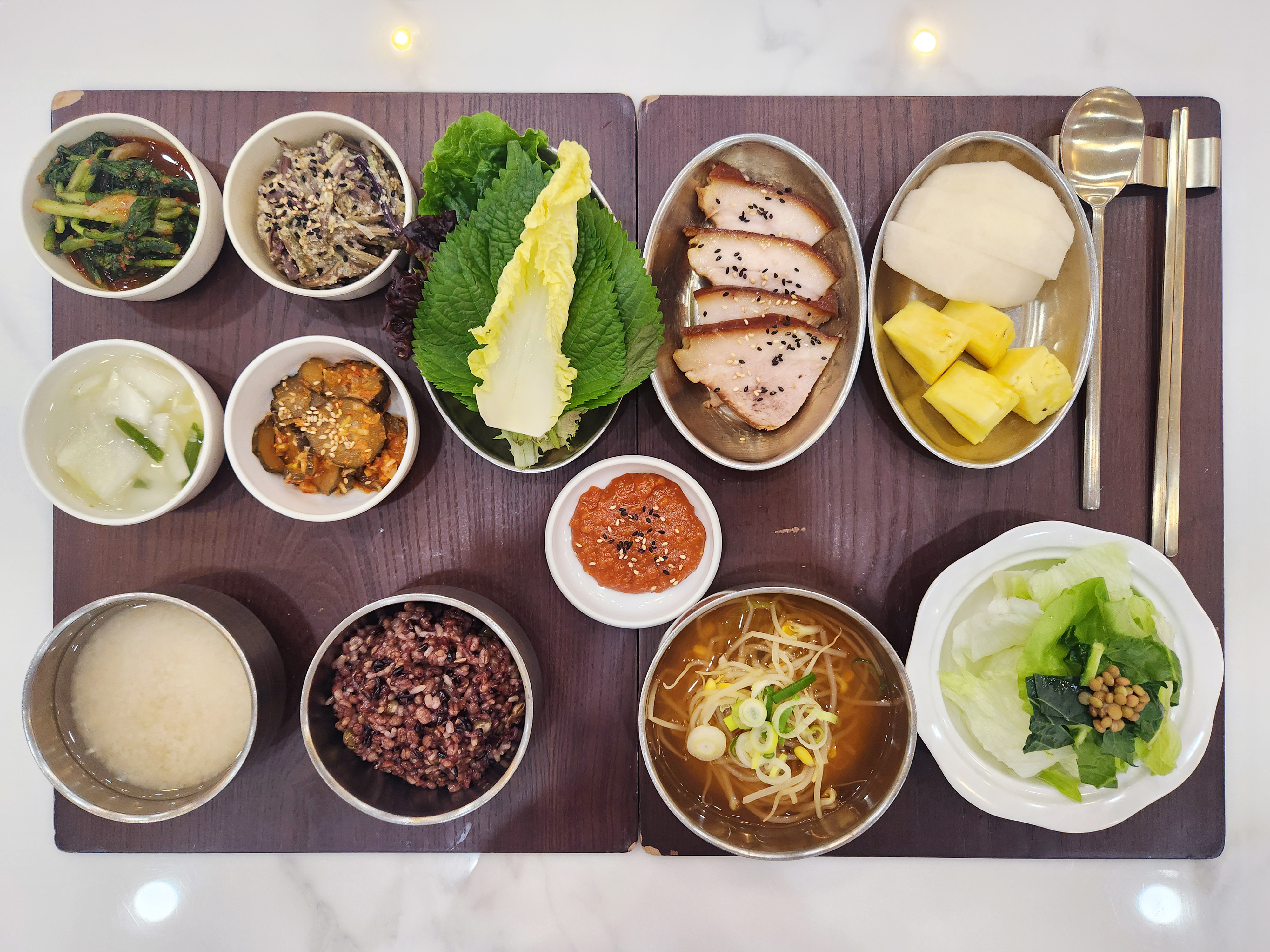 잡곡밥/누룽지/얼큰콩나물국/족발&쌈채소,숙채/