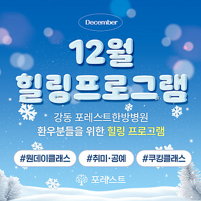 자궁내막암 3기, 박지혜 환우님의 희망일지 ep_1 | 포레스트 환우 이야기 2024.08.08 자궁내막암 3기, 박지혜 환우님의 희망일지 ep_2 | 포레스트 환우 이야기 2024.08.08 자궁내막암 3기, 박지혜 환우님의 희망일지 ep_3 | 포레스트 환우 이야기 2024.08.08 폐암 4기(비소세포암), 서중원 환우님의 희망일지 ep_1 | 포레스트 환우 이야기 2024.08.08 폐암 4기(비소세포암), 서중원 환우님의 희망일지 ep_2 | 포레스트 환우 이야기 2024.08.08 폐암 4기(비소세포암), 서중원 환우님의 희망일지 ep_3 | 포레스트 환우 이야기 2024.08.08 새해의 건강계획 세우셨나요? 치료의 연속 속에서 잠깐 멈춤! 새해를 맞아 지금의 나, 지금의 몸을 살짝 체크해볼 시간이에요 포레스트가 차근차근 알려드릴… 2026.01.22 [포레스트 건강이야기] 여성에게 좋다던 석류, 정말 모두에게 괜찮을까요? 여성에게 좋다던 석류, 정말 모두에게 괜찮을까요? ‘여성의 과일’이라는 말만 믿기 전에 내 몸엔 어떤지… 2026.01.08 포레스트의 항암식이Chef팀을 소개합니다. 시즌1에 이어서 큰 이슈가 되고 있는 흑백요리사 시즌2 다들 시청 중이신가요? 포레스트에도 특급호텔, 미슐랭 2스타 출신 등… 2025.12.31 Hot 2026년, 새해 복 많이 받으세요! 지난 한 해 동안 포레스트와 회복의 여정을 함께해 주셔서 진심으로 감사드립니다 2026년 병오년, 붉은 … 2025.12.30 포레스트 크리스마스 면역 식탁 여러분, 크리스마스는 따뜻하게 보내셨나요? 12월 25일, 포레스트에서는환우분들의 건강과 회복을 응원하는풍성한 크리스… 2025.12.26 강동 포레스트 힐링프로그램 후기! 강동 포레스트에서는 환우분들을 위한 재미있고 유익한 힐링 프로그램을 진행하고 있습니다. (댄스·원데이 클래스·취미공예·필라… 2025.12.23 Hot 강동 포레스트 12월 연말 특식! 강동 포레스트에서 감사한 마음을 가득 담아 연말·신년 맞이 특별한 식탁을 준비했습니다 특급호텔 출신 Chef팀이 하나하나 … 2025.12.16 Hot [건강정보] 두통에 도움되는 간단한 지압법 소개드립니다. 안녕하세요, 포레스트입니다! ???? 오늘은 두통에 자주 시달리시는 분들을 위해 하루 1분! 가벼운 두통이 있을 때 하면 … 2025.12.10 Hot 12월 강동 포레스트 힐링프로그램 12월 포레스트 힐링프로그램을 소개합니다. 반짝이는 12월, 크리스마스의 기쁨이 가까워지고 있습니다. 차가운 겨울바람 … 2025.12.02 12345 Search 검색대상 제목 내용 제목+내용 회원아이디 회원아이디(코) 글쓴이 글쓴이(코) 검색어 필수