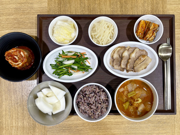 잡곡밥/감자고추장찌개/보쌈/부추무침/