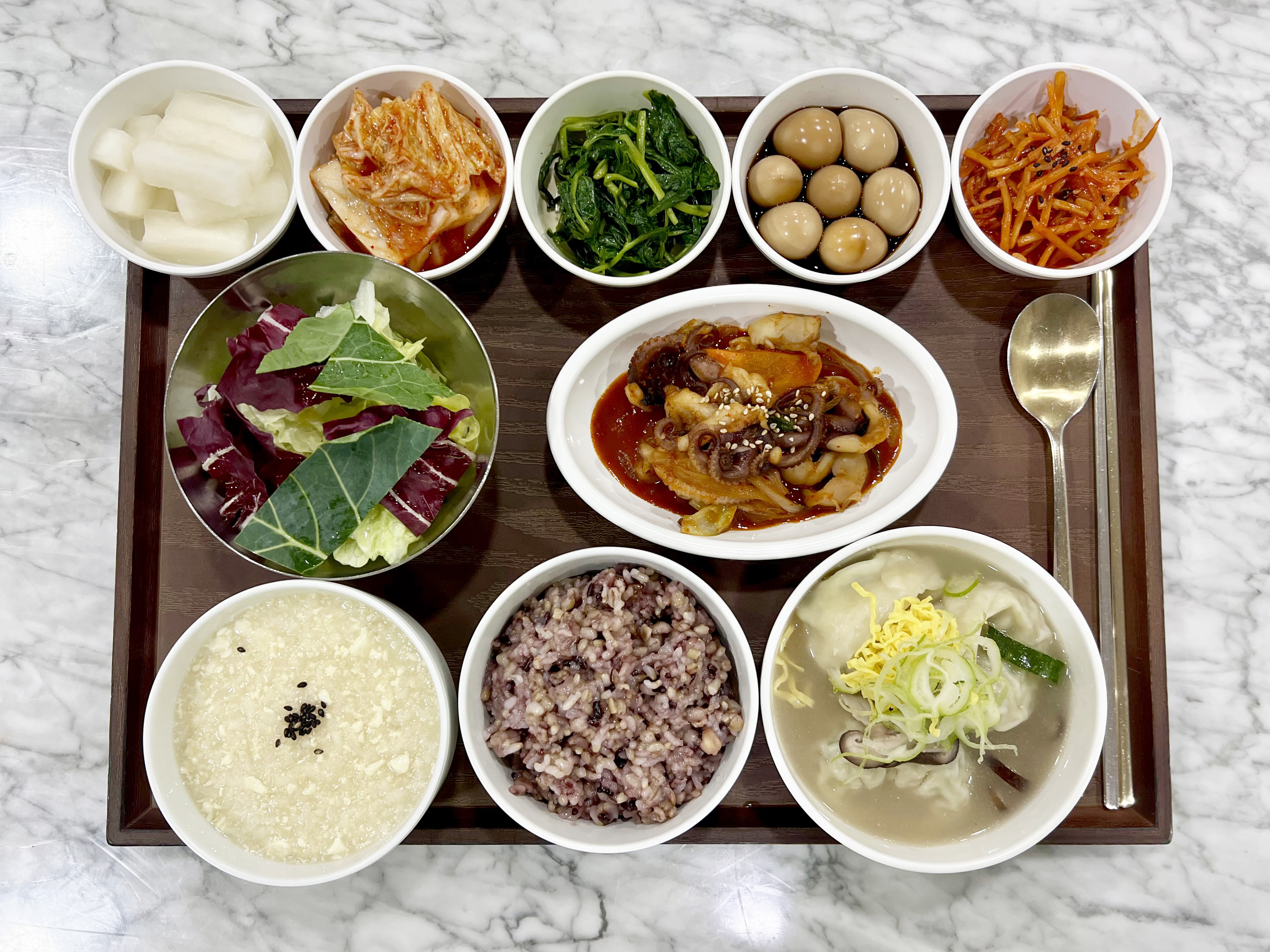 두부죽/ 잡곡밥/ 만둣국/ 쭈꾸미볶음 /