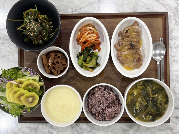 계란죽/ 잡곡밥/ 유채된장국/