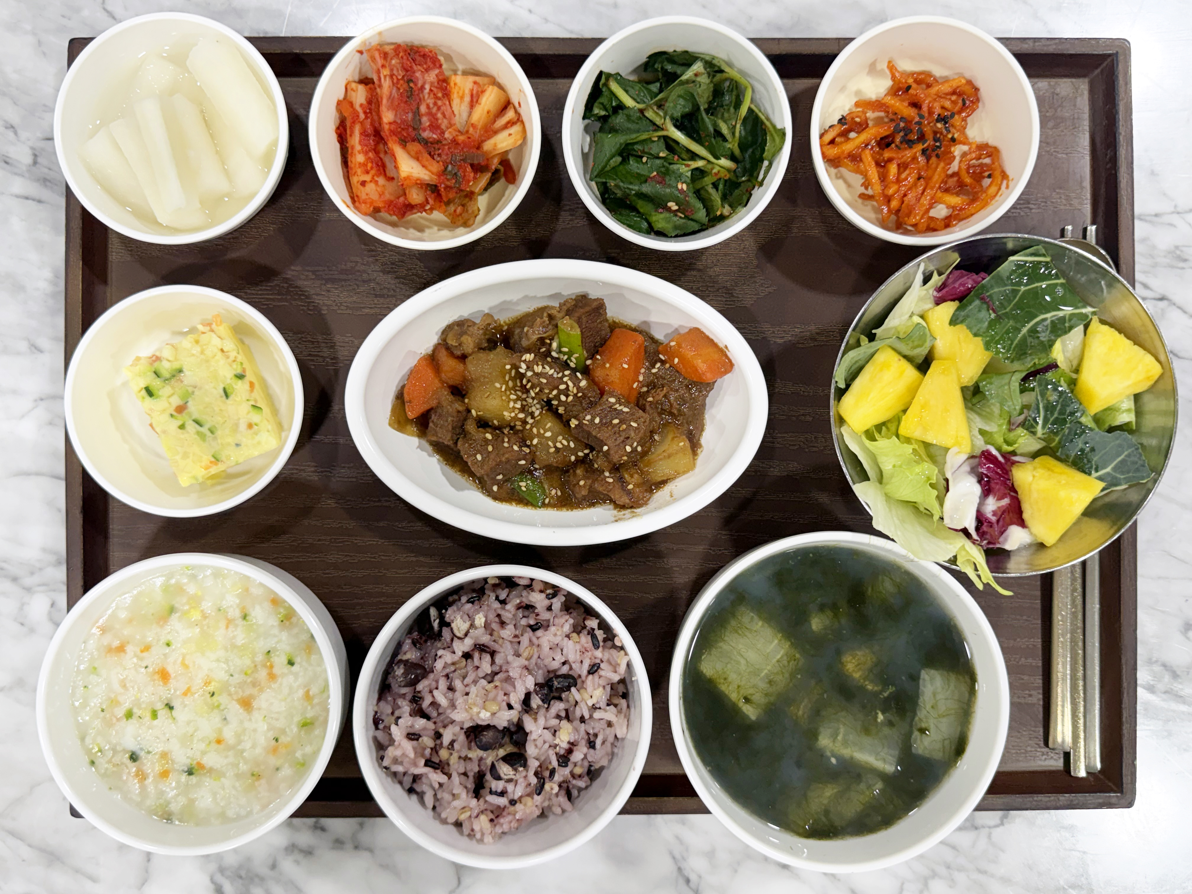 야채계란찜 / 배추김치 / 계절샐러드